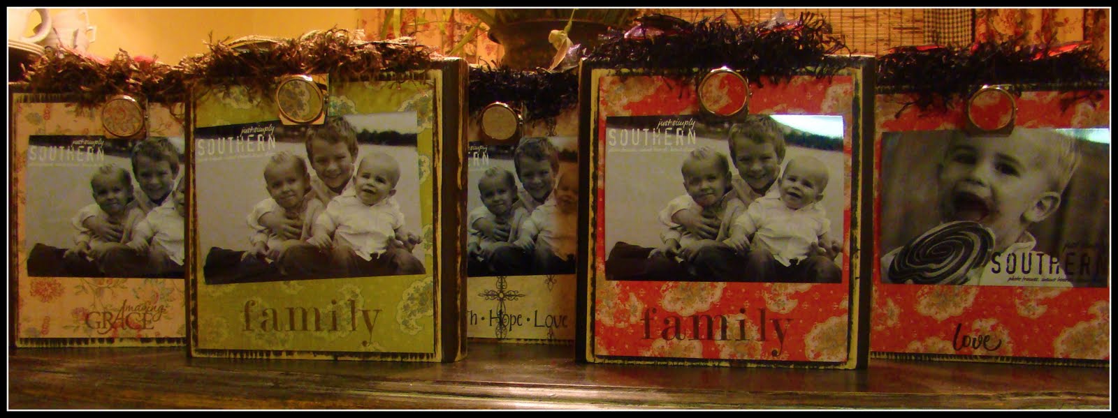 Kristi, who runs Just Simply Southern, makes the neatest picture frames out of distressed wood. They have a huge sense of warmth to them and are all very unique from one another. These frames allow you to change the photo often + without hassle! Hello, an answered prayer.