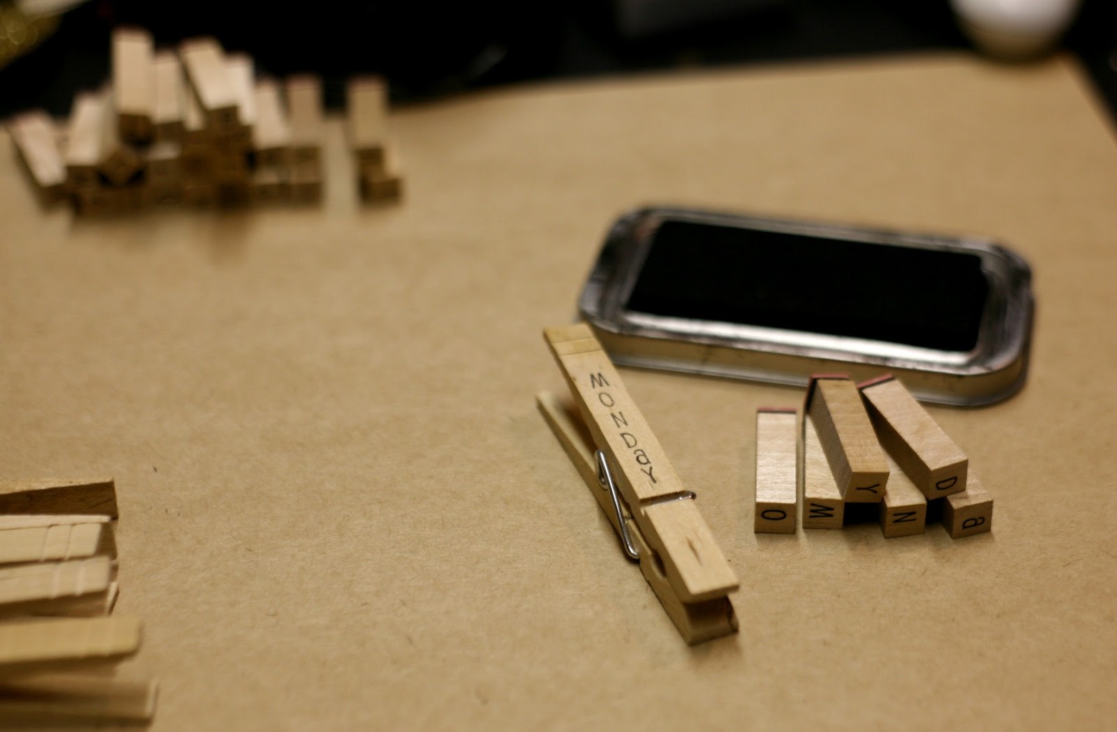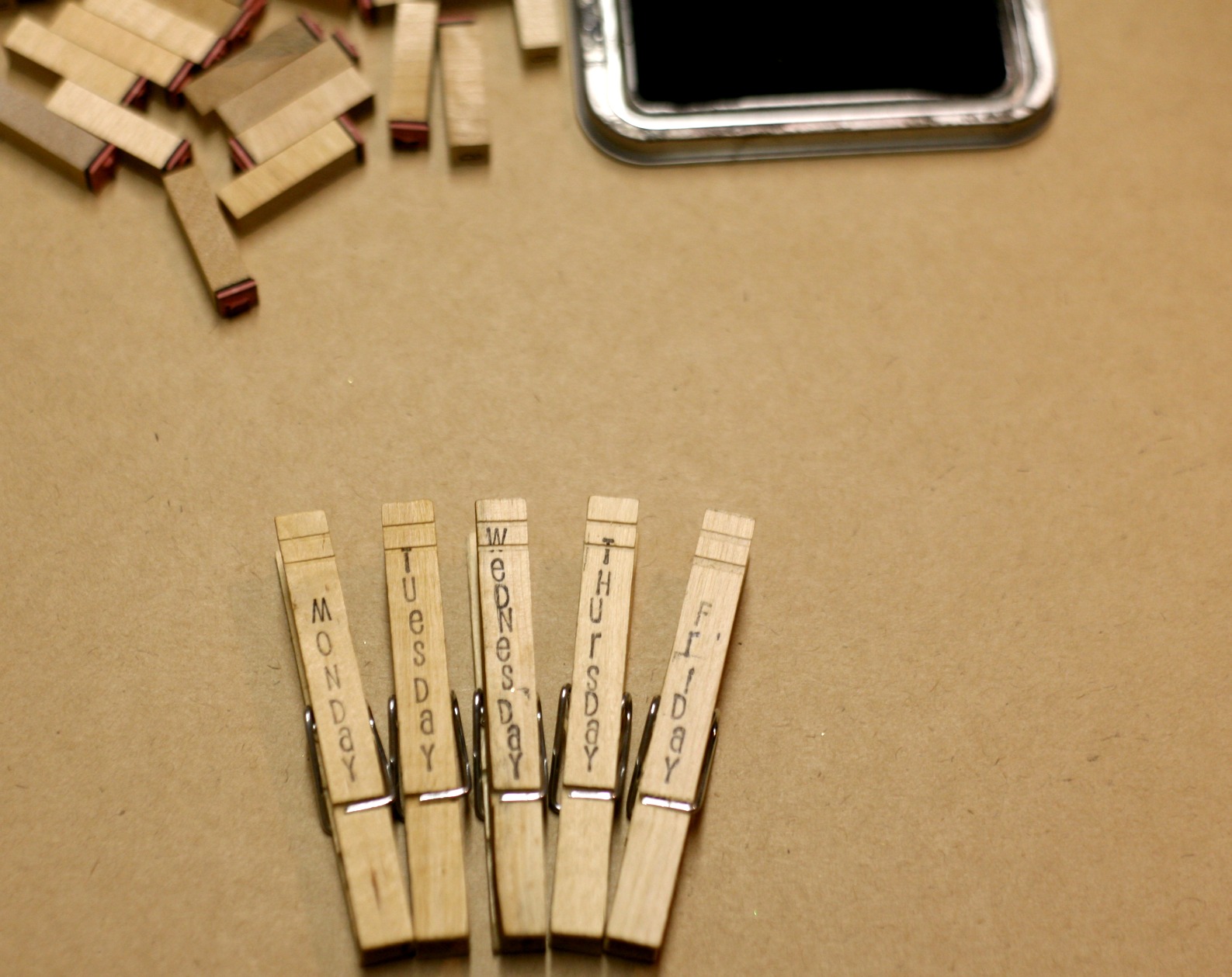 I decided to make my week Monday — Friday and leave my weekend open with no to-do’s necessary. Stamp each clothes pin with the letters for each day. You can put the whole word or abbreviate, your choice!