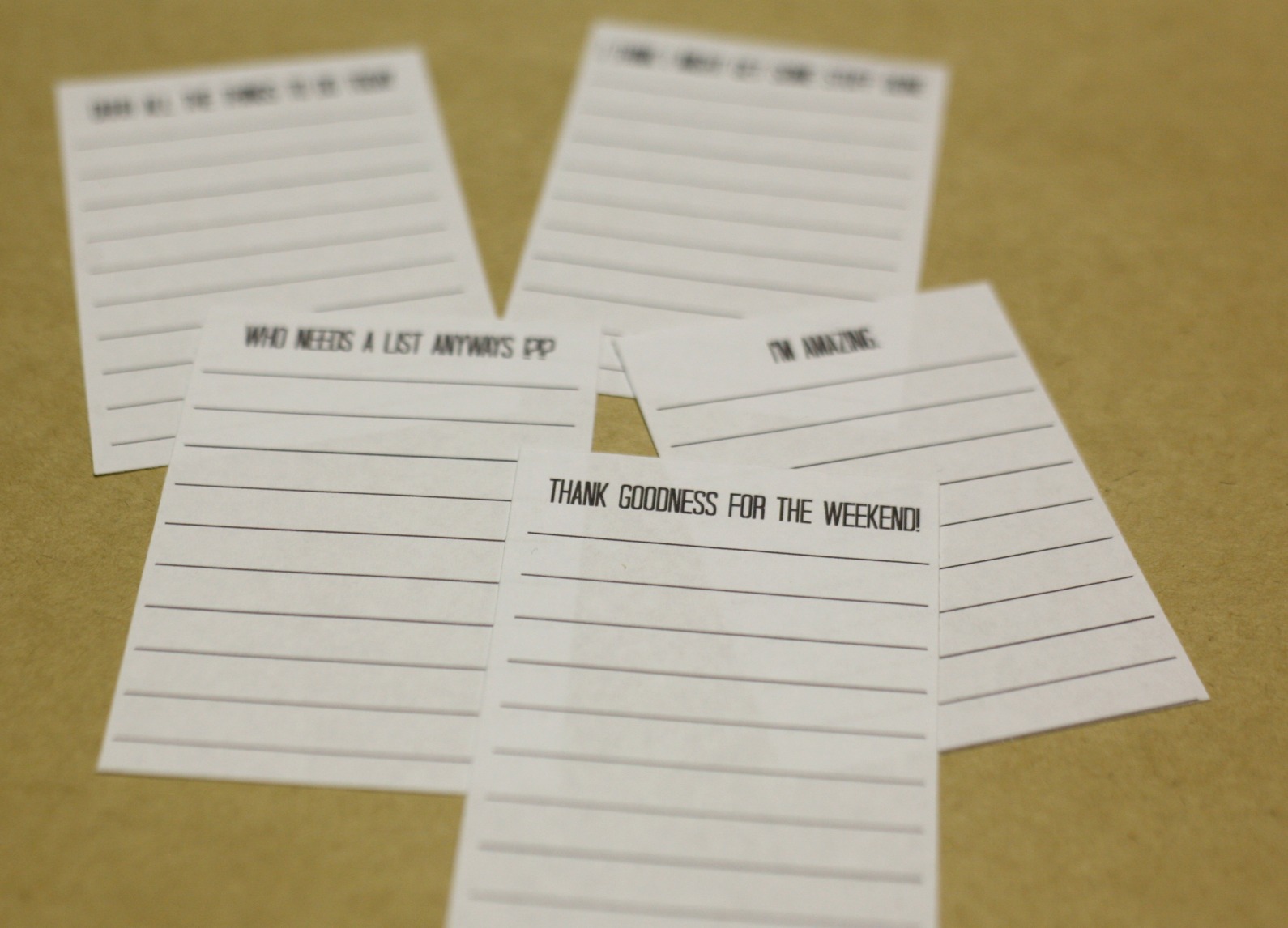 Find a spot on your wall or a cork board and hang up the twine with tacks. Next up slide each clothespin onto your twine and attach your lists.