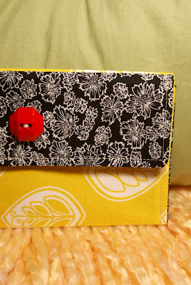 Do you have a pair of RED hot shoes? Maybe not. But if you did, wouldn’t this wallet be SUPER cute with it? I added an eye-poppin’ red button to the front, although it is a snap closure. Great for your checkbook and register ;) Click
