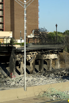 The explosion and intense heat caused the Nine Mile Road overpass to collapse. Again, praise God no one was driving or walking on the overpass.