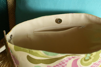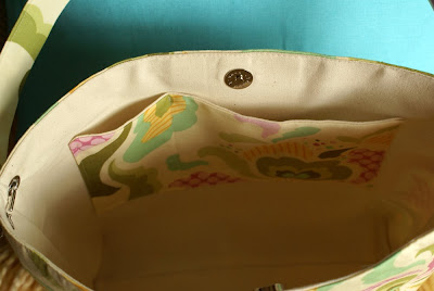 This purse is large, yet small enough for everyday use. The inside is lined with a neutral-colored canvas and has two pockets. One pocket is great for an iPod Nano or your cell phone, the other for keys, etc. There is also a fairly large zippered pocket on the inside. This bag closes via magnetic snap, is interfaced for durability and includes my signature GUSSY label.