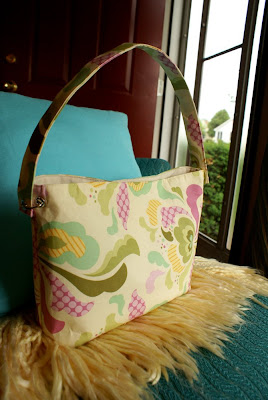 Gussy says: Brighten up your day with this charming Gussy bag sewn from Heather Bailey fabrics!