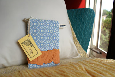 blue with orange ruffle